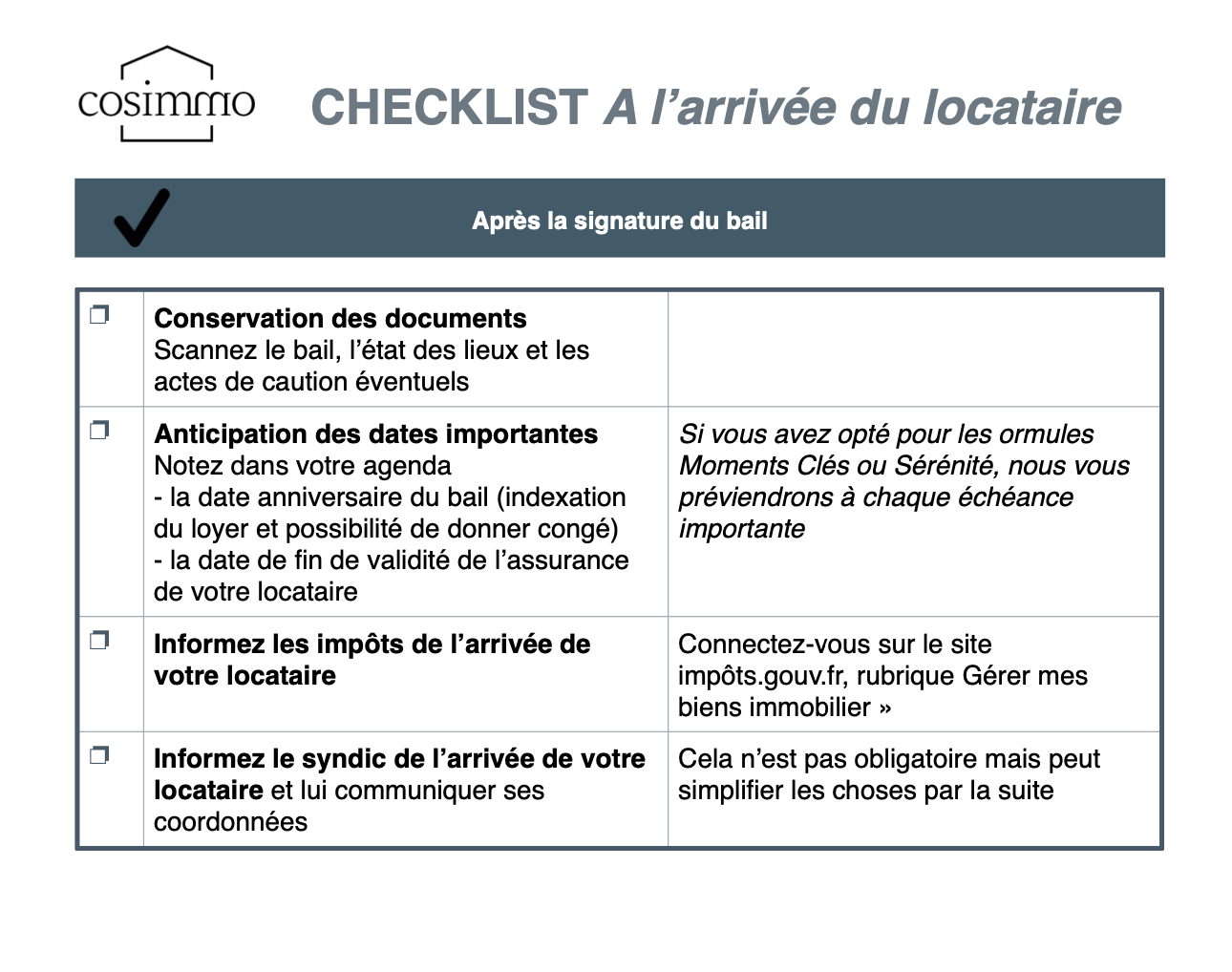 TO DO - ARRIVEE DU LOCATAIRE